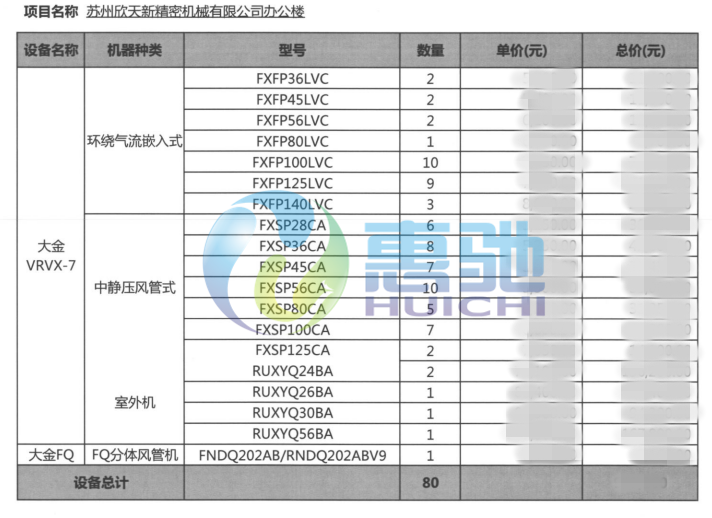 項目內容:大金VRV-X系列直流變頻空調   大金FXSP-BA系列中靜壓風管機   VRV-X7室內外機設備安裝調試工程