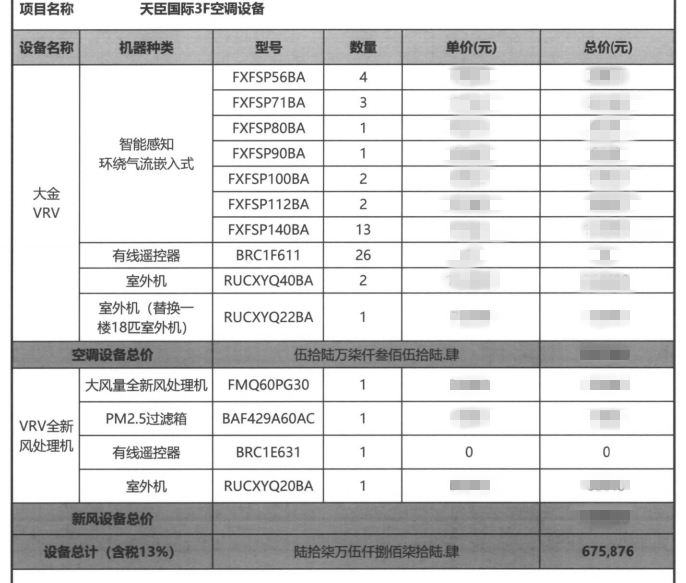 項(xiàng)目?jī)?nèi)容:大金空調(diào) SkyAir Multi系列 VRV-D VRV-X7系列中央空調(diào) VRV X新風(fēng)處理機(jī)全新風(fēng)集控系統(tǒng)安裝項(xiàng)目