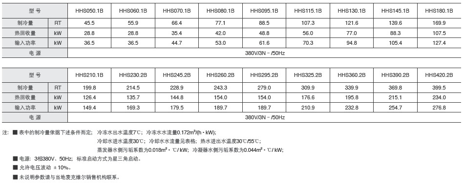 ■熱回收量可達機組標準工況制冷量的 10%~15%,制取的熱水溫度可達 55℃,可滿足賓館、醫(yī)院、工廠等場所的熱水需求。