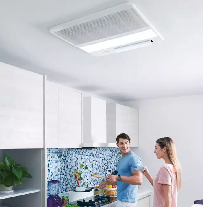 大金金制全效家用中央空調廚房專用空調,專為廚房設計。超薄嵌入式內機不占空間,