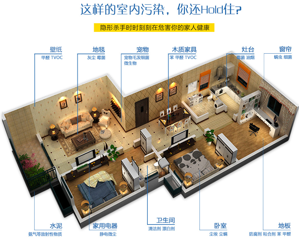 3、清除室內裝飾后留下的甲醛、苯等有害物質。